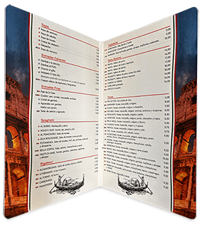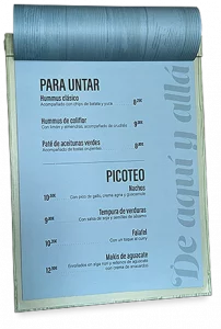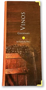 La elegancia de presentar sus productos en cartas con diseños personalizados similares, no solo harán que el estilo de su establecimiento se consolide, cara a sus comensales, sino que presentará una oferta amplia y variada – por separado – de sus productos.
