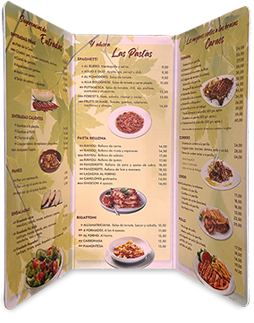 Una carta diseñada para vender, que ese tiene que ser su máximo objetivo, donde sus platos destaquen y primen (si lo desea) las imágenes más importantes de su cocina. No se olvide que comemos con la vista…